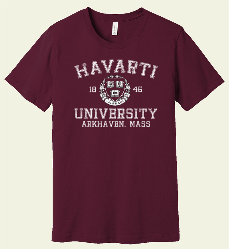 And for those who wish to show off their educations, in response to several requests, you can also support the campaign by acquiring a t-shirt from Havarti University.