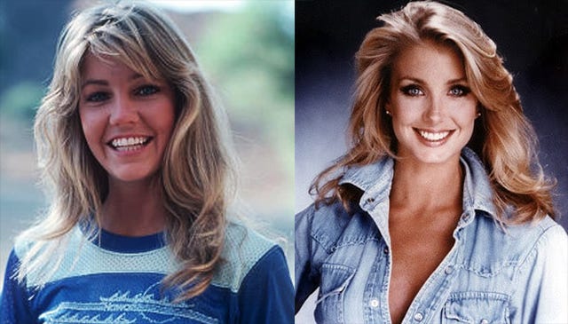 Heather Locklear looks like a cheap knock-off of Heather Thomas, as if she might have been available at Target for one-third the price of the name brand.