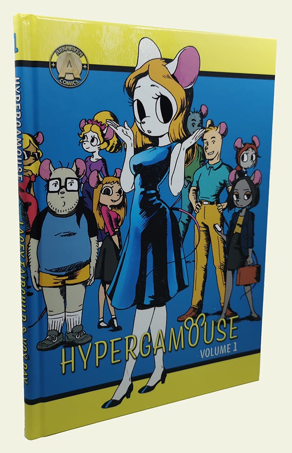 In other Hypergamouse news, the hardcovers, paperbacks, and variant covers have all arrived in the New York warehouse. Backers of the campaign should email Castalia Shipping with their current addresses: the email address is castaliashipping AT gmail.