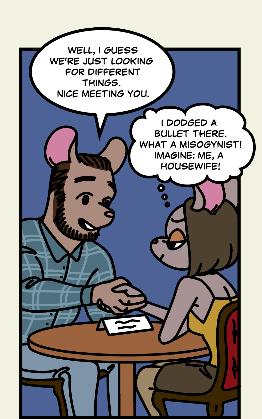 The young men who wanted to get married and have children, and who took these young women at their word, never went on a second date with them. As it happens, those women tended to either a) get married and have children with men who metaphorically patted them on the head and ignored their posturings, or b) never got married and never had children.