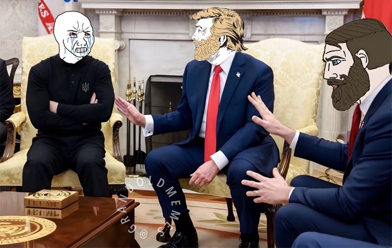 Notice in particular how the Delta Vance tries to respond to the Gamma Zelensky’s dishonest and incoherent rhetoric with dialectic, while the Alpha Trump completely ignores the Gamma’s subversive attempts to reframe and pays absolutely no attention to anything he attempts to interject. And when the Gamma later attempts to quibble with the Alpha’s rhetoric and pretends to accept his metaphor at face value - “I’m not playing cards” - it looks even weaker than Vance’s inability to address Zelensky’s rhetoric.