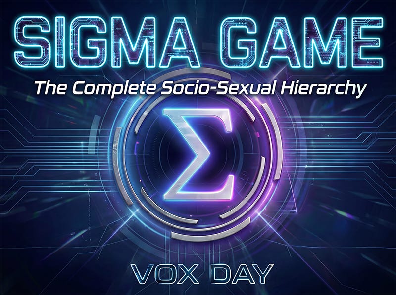 It’s taken a long time, but I hope it will be deemed worth the wait. SIGMA GAME: The Complete Socio-Sexual Hierarchy is now available on Amazon in Kindle, KU, and Audible formats, and is going out to the backers today.