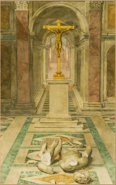 And, of course, the idea that the Cross is a symbol of “powerlessness” or “the slave mentality” is so profoundly stupid that it is easily dismissed by a single image.