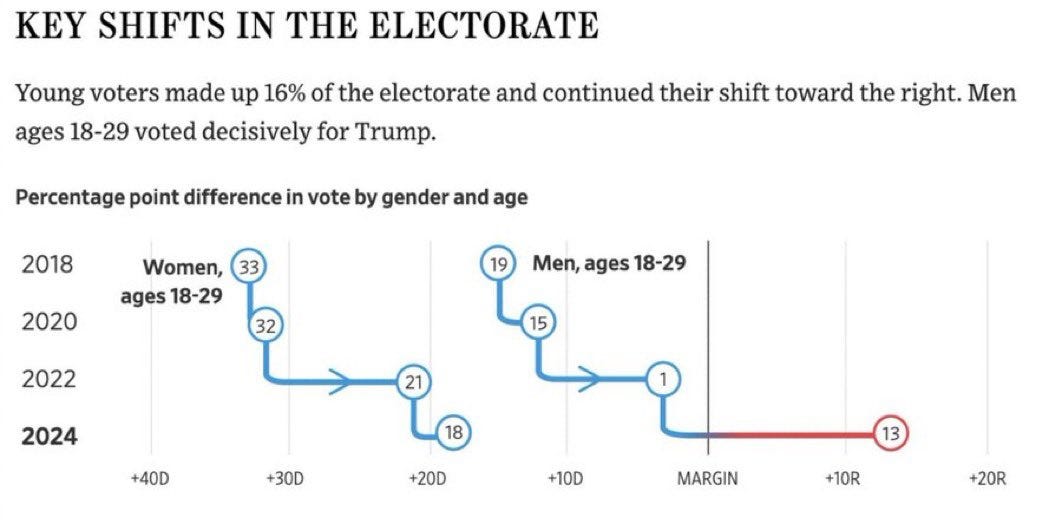 Consider the following chart, which maps US political preferences by sex since 2018.